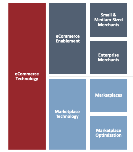 eCommerce technology can be broadly divided into two segments: enablement and marketplace. Each segment services different categories of merchants.